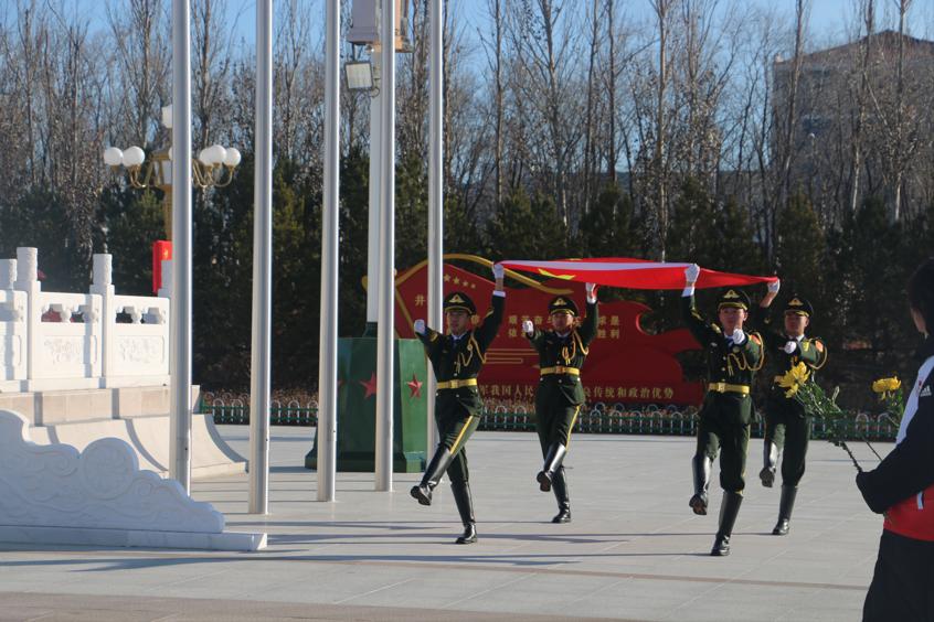 国防教育实践团国旗护卫队迈着坚定的步伐,护送着五星红旗缓缓前行,拉开了本次纪念活动的序幕。