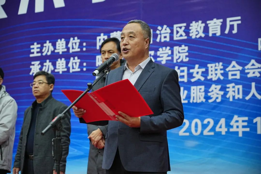 bat365中文官方网站党委委员、副校长李跃武出席会议并致辞,呼伦贝尔市妇联党组书记、主席乌兰托娅宣布大会开幕。招聘会由招生就业处处长赵小花主持。