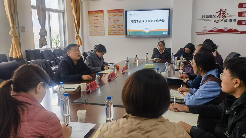 尹立军针对推进师范类专业的认证工作,提出了明确而具体的要求。他强调,师范类专业认证工作应与新一轮本科教育审核评估的相关工作紧密结合,同步推进。要以审核评估为契机,着重加强专业内涵建设,确保认证工作不仅停留于报告撰写的层面,而且要切实深入到各项实际工作中去。认证专业所属二级学院的领导班子必须发挥引领作用,全面负责并协调此项工作。要认真审核教学大纲、课程目标达成报告、毕业论文、试卷以及教育实习等教学文件,严格管理教学档案,确保所有材料均达到认证标准。同时,各专业要加强教师培训,确保教师队伍能够适应认证工作的要求,并在专业发展方面取得新的进步。