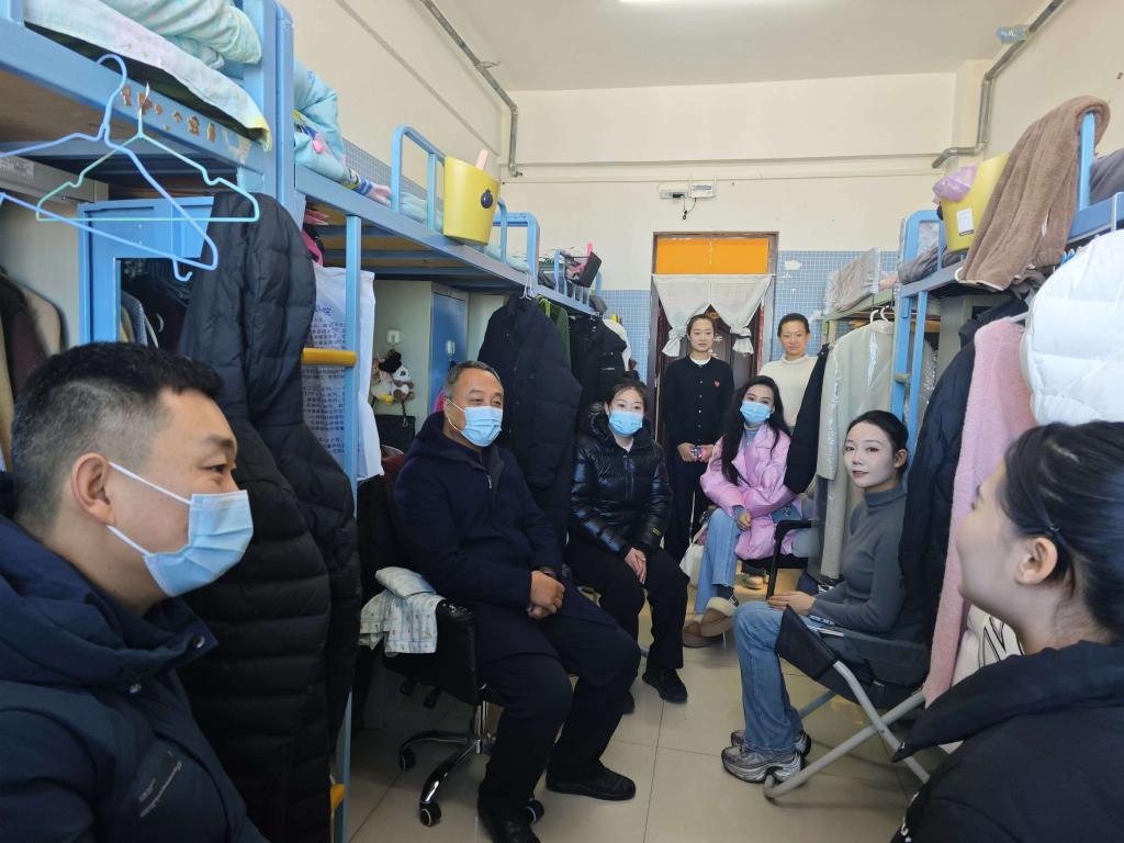 为了进一步加强与学生的沟通联系,深入了解学生的生活学习状况,及时解决学生面临的实际困难,11月8日上午,校党委委员、副校长李跃武深入音乐与舞蹈学院联系班级——2023级舞蹈表演班走访调研,并深入该班课堂、宿舍现场办公,充分了解班级学生的日常生活和学习状态。音乐与舞蹈学院学工队伍成员陪同走访。