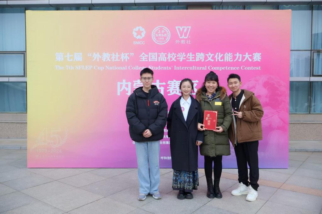 11月9日,第七届“外教社杯”全国高等学校跨文化能力大赛内蒙古赛区总决赛在内蒙古财经大学落下帷幕,由bat365官网外国语学院乌日娜、杨静和宫林任指导教师,外国语学院吴俊达、马克思主义学院韩耀骋和教育学院赵菲三名学生组成的“星梦”队,在比赛中荣获内蒙古赛区一等奖。
