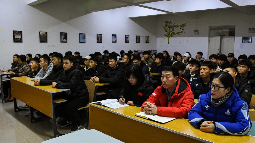 11月13日下午,呼伦贝尔市关心下一代工作委员会新中国史宣讲教育活动在bat365官网体育馆二楼多功能教室举行。市关工委宣讲团团长刘忠民作了题为“七十五载颂辉煌 感恩奋进新征程”的报告,bat365官网关工委常务副主任包金钢、副主任胡楚勒、陈绍英、谢宾,体育学院(冰雪运动学院)党总支书记胡日查毕力格,离退休工作处工作人员和体育学院(冰雪运动学院)部分师生等百余人聆听了宣讲。