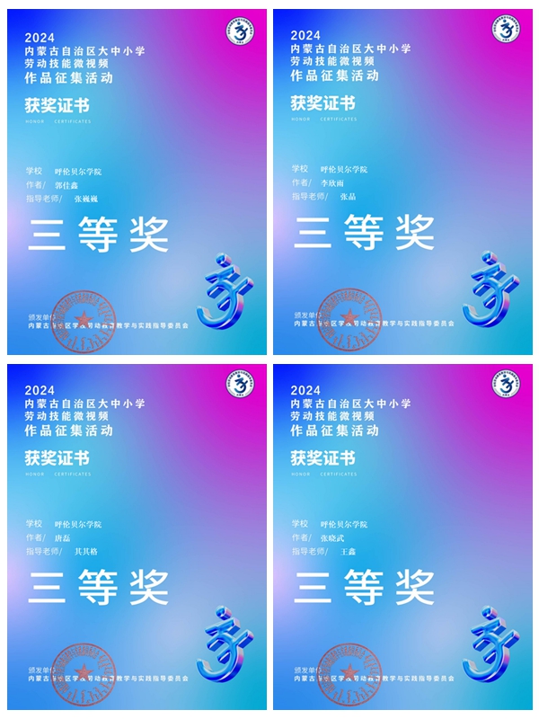 为进一步传播劳动思想、传承劳动精神、学习劳动技能,教育引导学生崇尚劳动、尊重劳动,近日,由内蒙古自治区教育厅主办,内蒙古自治区学校劳动教育教学与实践指导委员会、内蒙古广播电视台承办的全区大中小学劳动技能微视频作品征集活动落下帷幕,bat365官网共有4名同学荣获“普通高等学校组”三等奖的好成绩。