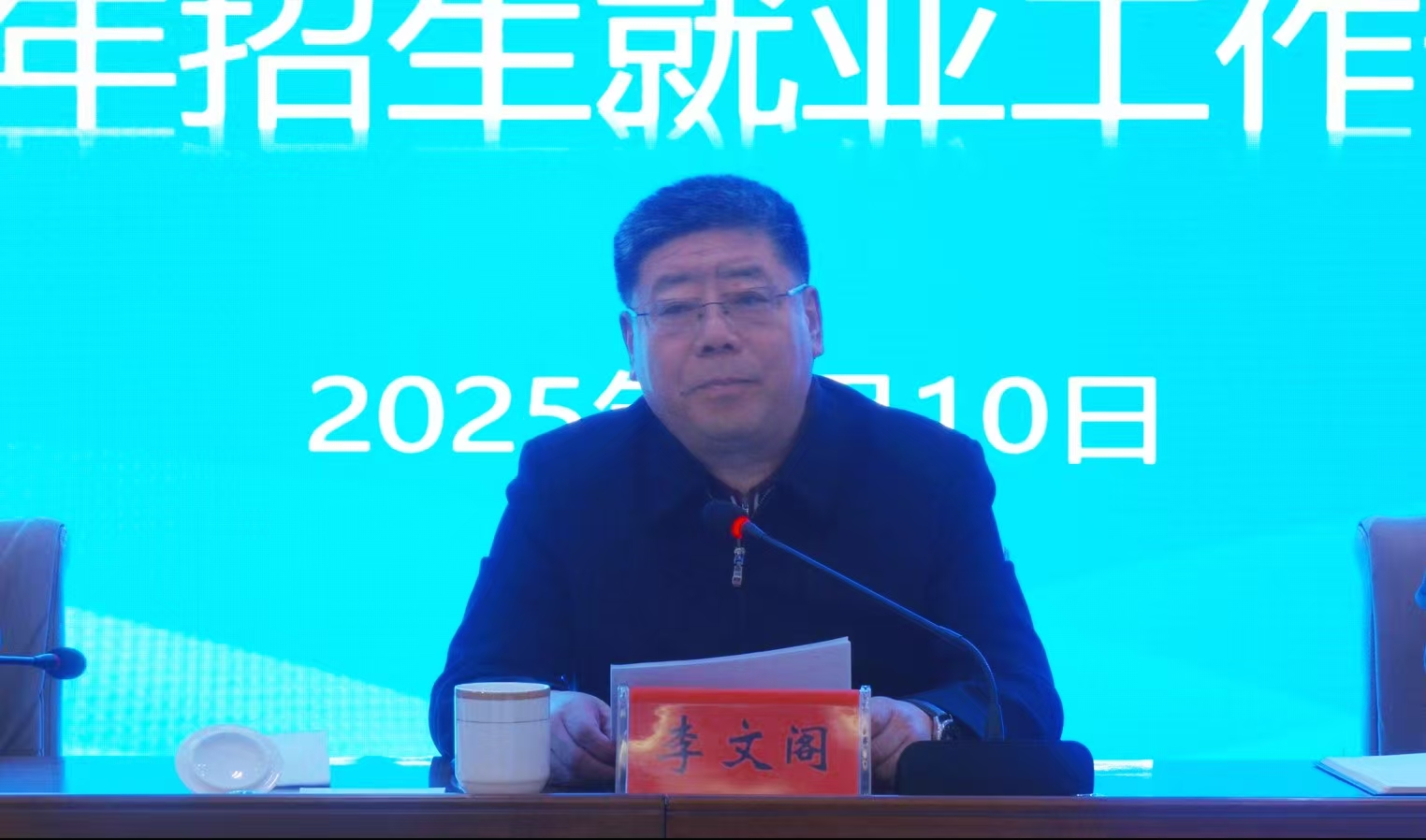 李文阁讲话时指出,要坚持“三个导向”推动工作提质增效:一是要提高政治站位,增强工作的责任感和紧迫感;二是要强化组织领导,扎实推进重点工作;三是要凝聚共识,为实现目标而努力奋斗。他强调,要以更高的站位、更宽的视野、更实的举措,持续推进各项工作,在招生与人才培养中为莘莘学子搭建通往梦想的桥梁,在促进毕业生就业工作中为社会输送源源不断的栋梁之材。他要求全校上下以“时不我待”的紧迫感和“功成有我”的责任感,奋力开创招生就业工作新局面。