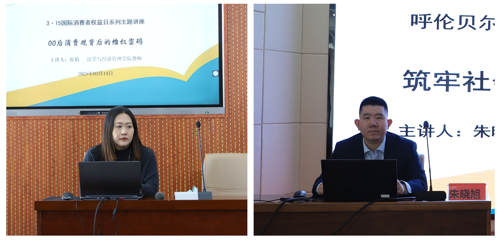 3月14日,法学与经济管理学院教师张婧以“00后消费观背后的维权密码”为主题,结合年度维权热搜大数据及AI换脸诈骗等典型案例为切入点,深入剖析了00后群体的消费观,通过专业解读与案例剖析,为大学生讲解了新型消费场景下的维权之道;浦发银行呼伦贝尔分行职员朱晓旭,以“筑牢社会反欺诈防线 守护幸福和谐校园”为主题,结合真实案例,介绍了电信诈骗的常见手法、帮信罪的常见表现和高发的诈骗手段等。通过以上两场专题讲座的辅导,切实提高了bat365官网师生的风险识别与防范能力。