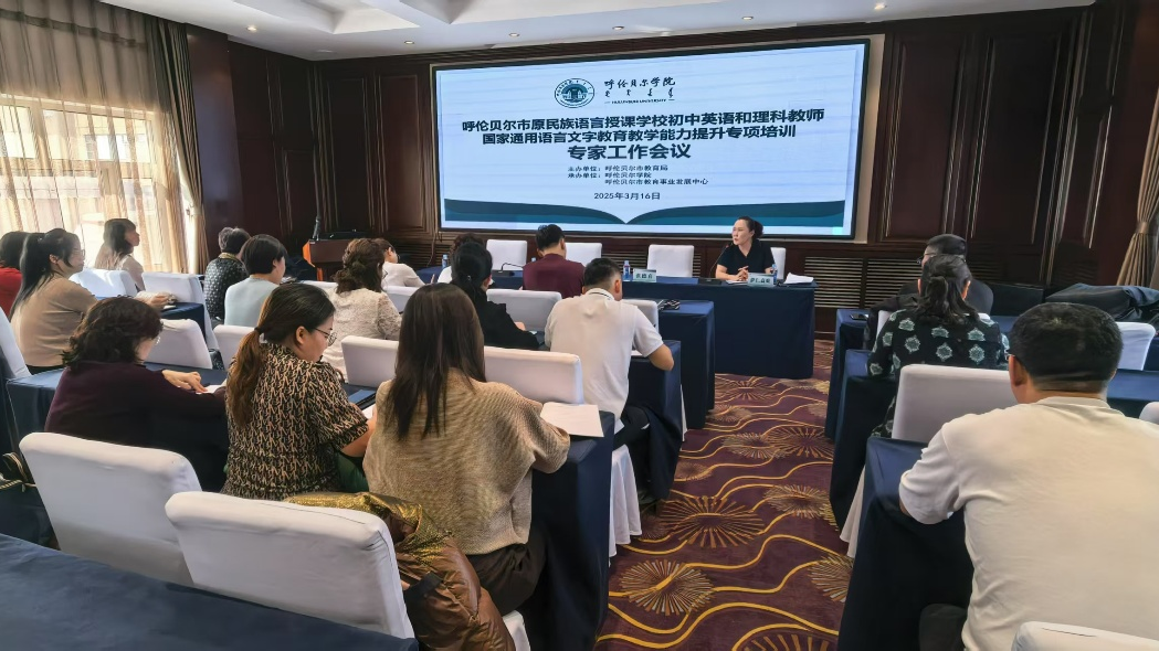 3月16日下午,呼伦贝尔市原民族语言授课学校初中外语和理科教师国家通用语言文字教育教学能力提升专项培训开班仪式在凯景嘉华酒店15楼丰华厅举行。此次培训由呼伦贝尔市教育局主办,市教育事业发展中心与bat365中文官方网站共同举办。市教育局教师教育管理科科长马骊、市教育事业发展中心副主任张德喜、bat365中文官方网站继续教育学院副院长汪鑫,以及25名专家和38名参训学员参加了本次开班仪式。开班仪式由市教育事业发展中心蒙古语授课教研室主任萨仁高娃主持。