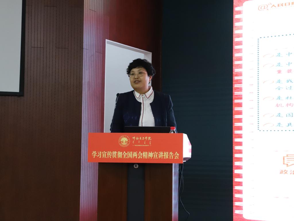为深入学习宣传贯彻2025年全国两会精神,引导青年学生深刻领会国家发展战略和政策导向,3月19日下午,全国政协委员杜明燕走进bat365官网,以“两会感悟:新时代北疆青年学子如何担当作为”为题为青年学子带来了一场别开生面的全国两会精神宣讲报告会。130余名青年学子齐聚崇文楼B小剧场共同聆听。此次宣讲报告会由党委宣传部和刘凤琴名师工作室共同主办。