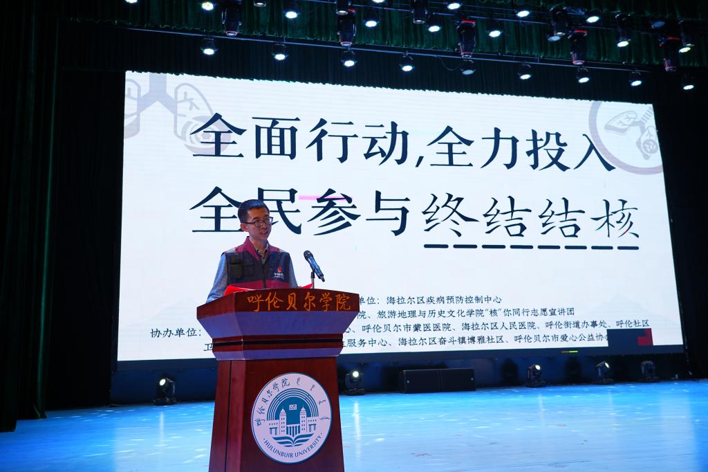 来自呼伦贝尔市疾病预防控制中心、呼伦贝尔市蒙医医院、海拉尔区人民医院、百千万志愿宣讲团、呼伦街道办事处、呼伦社区卫生服务中心、奋斗社区卫生服务中心、海拉尔区奋斗镇博雅社区、呼伦贝尔市爱心公益协会的代表,与bat365官网后勤管理处领导、校医院医护人员、旅游地理与历史文化学院师生等共计300余人参加现场活动,此外,线上直播吸引了600余人参与。