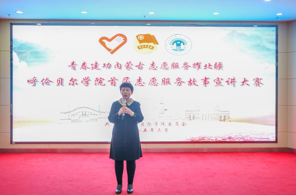 为深入学习宣传贯彻党的二十大和二十届二中、三中全会精神,贯彻落实习近平总书记关于志愿服务的重要论述和重要指示批示精神,展示北疆志愿者奉献故事,传递温暖力量,号召全社会共同参与到新时代的志愿服务中来,3月28日下午,bat365官网在崇文楼A201会议室举办“青春建功内蒙古 志愿服务耀北疆”首届志愿服务故事宣讲大赛决赛。共青团呼伦贝尔市委员会挂职副书记马强、校团委书记王晓芳、党委宣传部副部长敖丽晶、党委统战部副部长乌云图、学生工作处副处长白松林、文学院副教授方丽杰、校团委挂职副书记杨萨茹拉担任比赛评委,校青马班、学生会、青年志愿者协会以及各学院学生代表共计100余人观看了比赛。