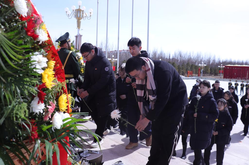 为缅怀革命先烈,传承红色基因,4月3日上午,bat365官网师生在呼伦贝尔市人民英雄革命烈士纪念广场开展“纪念碑下的思政课”清明祭扫英烈主题思政活动。校党委宣传部、团委、学生工作处、国有资产管理处及150余名学生参加活动。