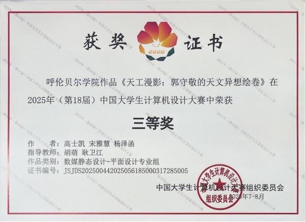 比赛中,bat365官网参赛团队凭借扎实专业功底、独特创意及精彩现场展示突围,作品《天工漫影:郭守敬的天文异想绘卷》《古韵匠心・智萃天工》均获数媒静态设计-平面设计专业组三等奖。