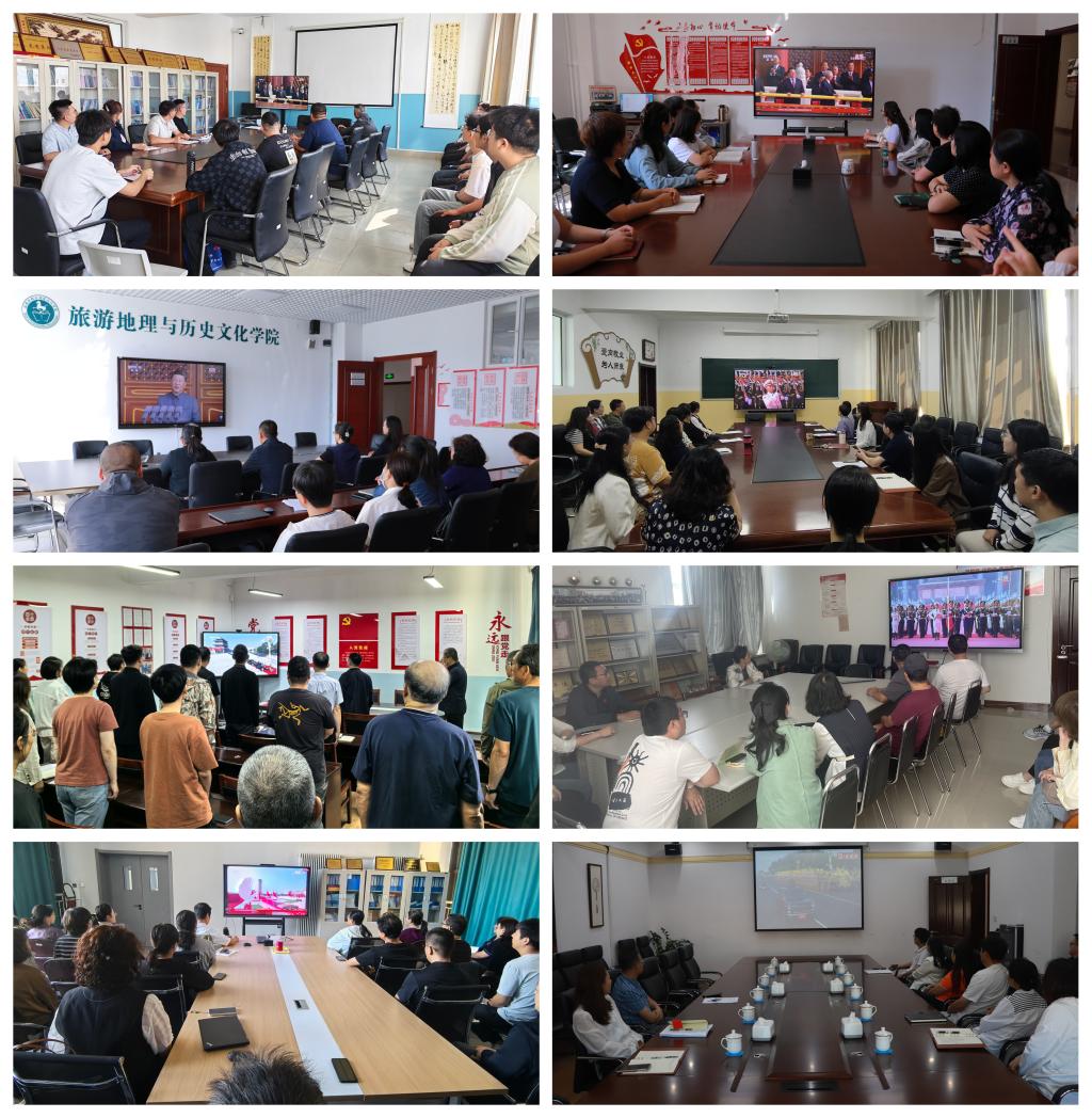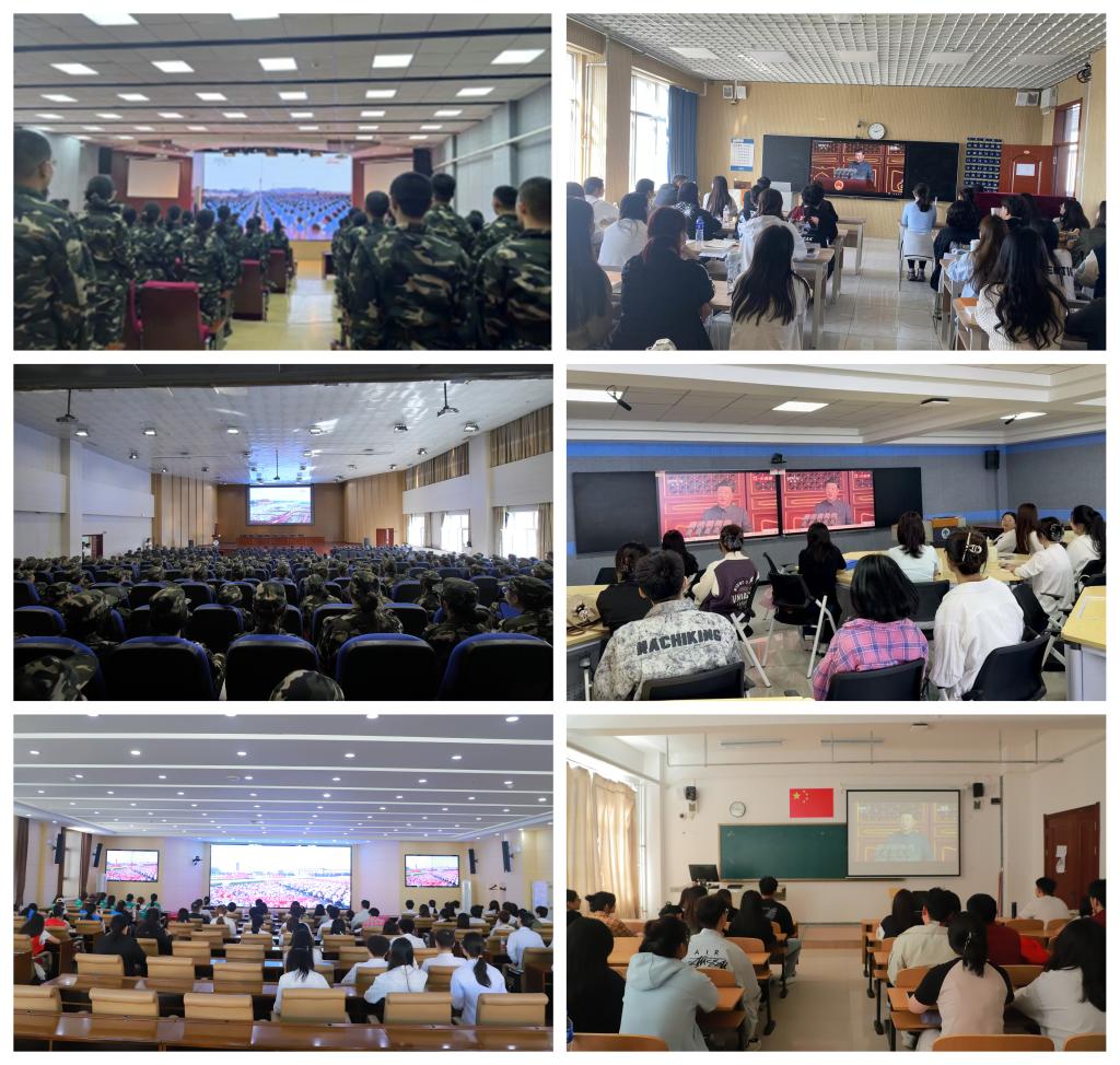 学校领导班子在319会议室集中收看。各二级学院、职能教辅部门组织师生分别在教学楼教室、学院会议室等场所,通过大屏幕共同观看大会直播。 观看过程中,师生们心潮澎湃、热血沸腾,会场不时响起热烈的掌声。