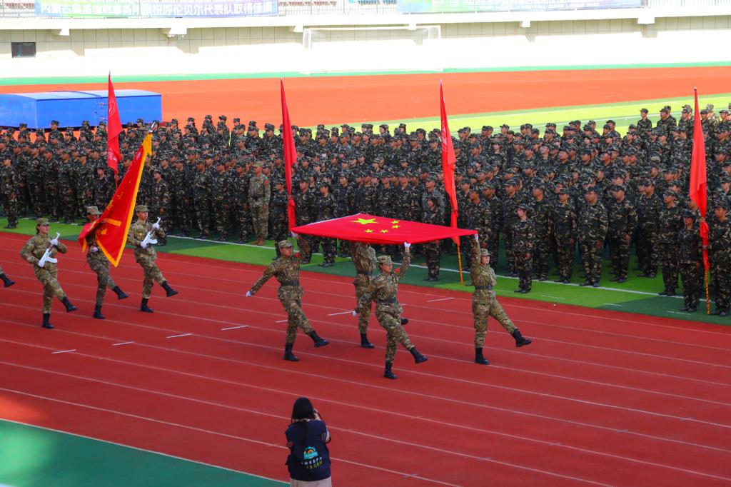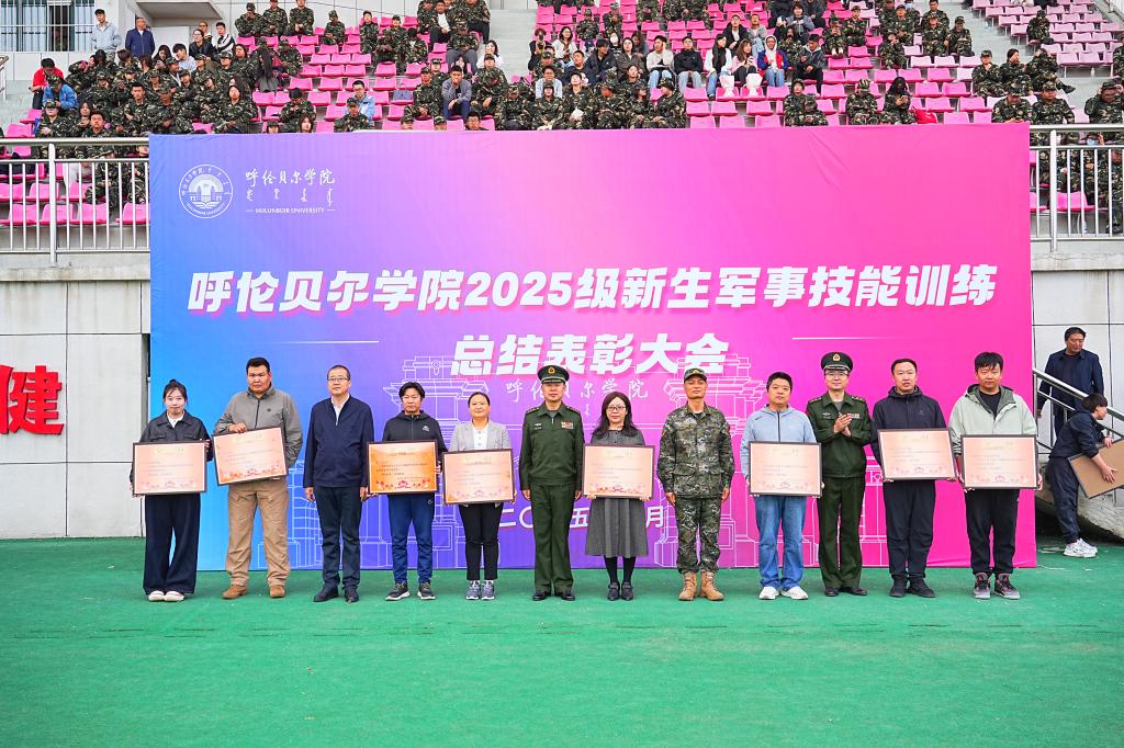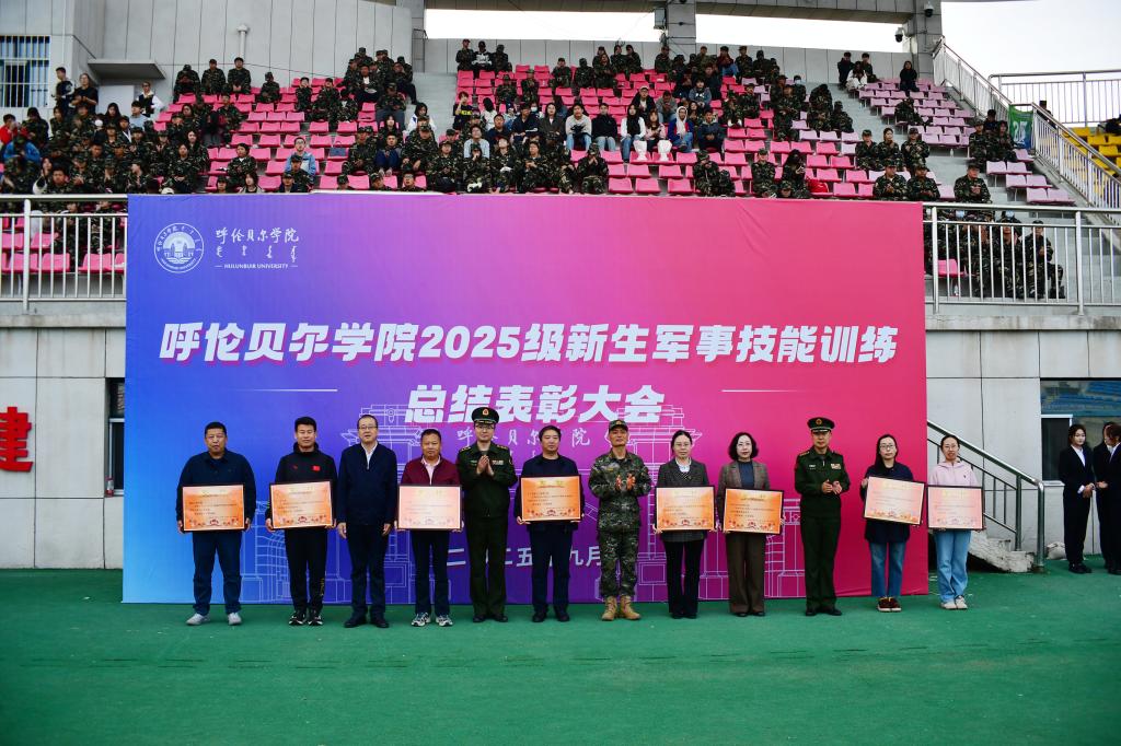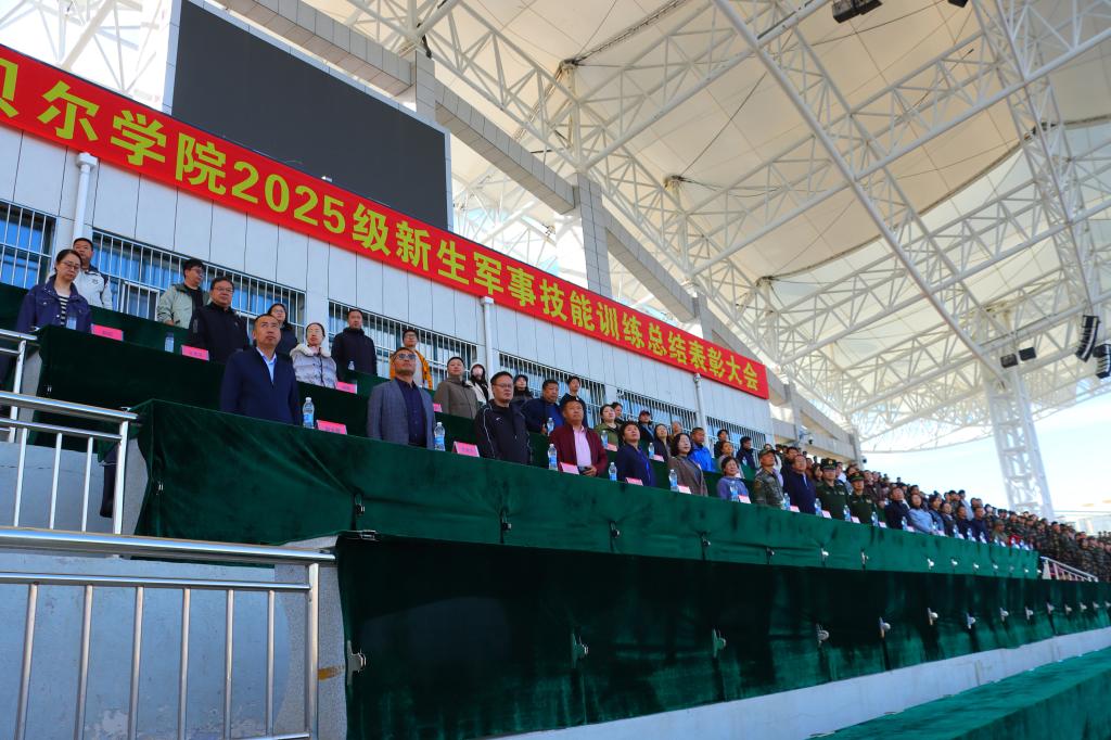 9月15日下午,bat365官网在东山体育场举行2025级新生军事技能训练总结表彰大会。校党委副书记张宏天、呼伦贝尔军分区战备建设处副处长白钢、武警呼伦贝尔支队副支队长蔡永刚、海拉尔区人民武装部部长丁玉龙、各二级学院党委书记、党委副书记、团学办主任、2025级新生辅导员参加大会,大会由学生工作处(党委学生工作部、武装部)处(部)长郝新君主持。