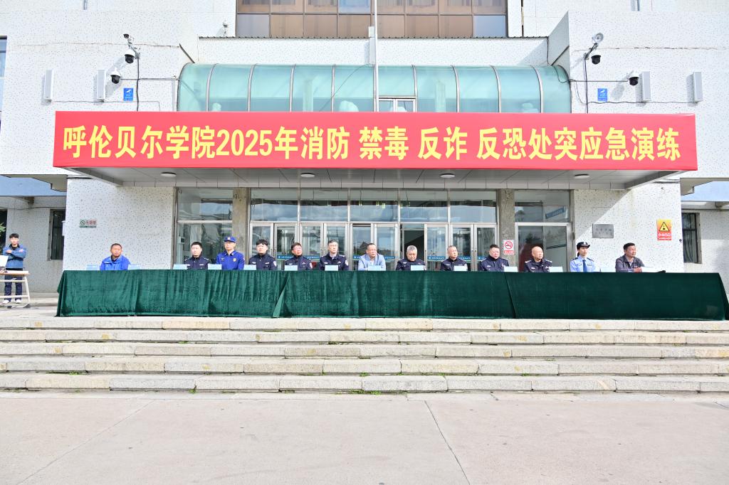 演练有序开展,各环节衔接紧密、实战性强:在消防应急演练中,首先模拟了火灾突发事件,学生们在消防警报声中,用湿毛巾捂住口鼻,沿预定路线快速疏散至安全地带,到达安全地带后,消防员详细地讲解灭火器的使用方法,学校救护医疗队通过现场示范为同学们讲解心肺复苏、海姆立克紧急救治;在反恐处突演练中,海拉尔公安分局反恐怖和特巡警大队模拟“恐怖分子”闯入校园场景,特警队员迅速制服了“歹徒”,并展示了破八刀和刀功持枪技术,随后bat365中文官方网站义警队带来警务技能联合展演;在高空救援演练中,消防部门启用70米登高平台消防车,模拟登高救人场景,救援人员精准操作设备完成高空救人,直观展现消防队伍的专业素养与团结奉献精神;开展禁毒与反诈宣传,海拉尔公安分局禁毒大队工作人员对同学们发放宣传海报及手册,并邀请同学们近距离参观毒品模型,讲解毒品危害与辨识方法,同时,呼伦贝尔市公安局工作人员进行了反诈宣传工作,呼吁同学们共同抵制买卖“两卡”行为,维护社会平安。