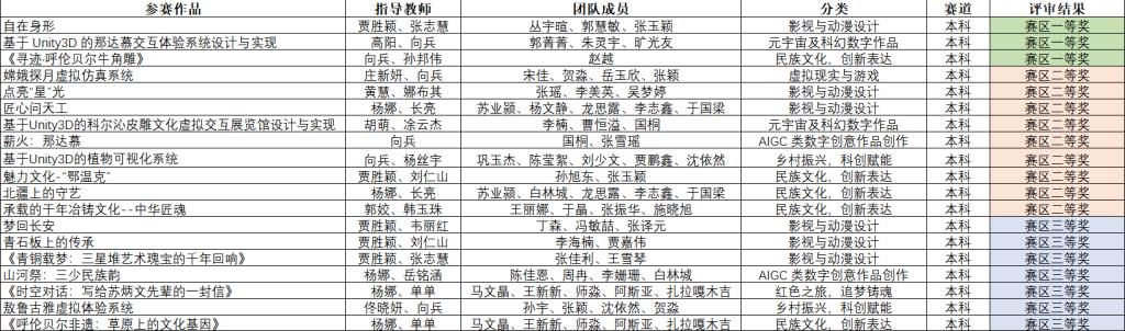 本次参赛作品涵盖了元宇宙及科幻数字作品、AIGC类数字创意作品、虚拟现实与游戏、影视与动漫设计、民族文化创新表达、乡村振兴与科技赋能等多个方向,充分体现了学生将艺术创意与前沿技术相融合的综合创新能力。作品中既有扎根民族文化的原创设计,也有紧跟时代发展的科技创新尝试,彰显了学校以创新引领实践的育人理念。