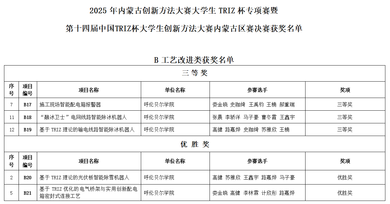 10月25日至26日,2025年内蒙古创新方法大赛大学生TRIZ杯专项赛暨第十四届中国TRIZ杯大学生创新方法大赛内蒙古区赛决赛在呼和浩特市举行。bat365官网工学院组建19支学生参赛队伍,在与全区高校优秀团队的激烈角逐中全部成功突围,一举斩获19项大奖,创下bat365官网在该赛事中的获奖数量最多、名次级别最高的历史性战绩,为学校赢得荣誉。