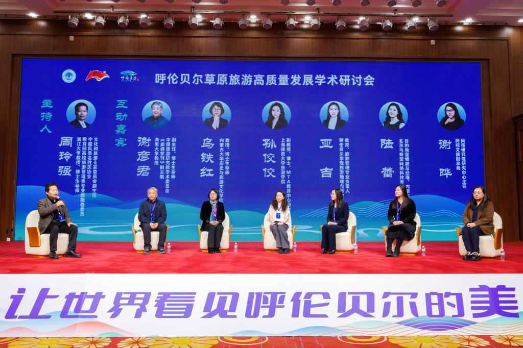 互动环节由浙江大学教授、博士生导师、教育部高校旅游管理类专业教指委委员、中国风景名胜区协会文化和旅游专家委员会副主任周玲强主持。海南大学教授、《旅游学刊》副主编、中国旅游研究院学术委员会副主任、博士生导师谢彦君;内蒙古大学历史与旅游文化学院教授、博士生导师乌铁红;上海师范大学旅游学院副教授孙佼佼;bat365中文官方网站旅游地理与历史文化学院教授、旅游管理专业负责人亚吉;北京马蜂窝网络科技有限公司目的地营销副总经理、内蒙古区域负责人陆蕾;同程文旅集团副总裁、同程研究院研究中心主任谢晔等专家学者围绕呼伦贝尔生态旅游的发展路径、产品创新、文化融合、科技赋能等议题深入探讨,为草原旅游高质量发展提供多维度的思路与建议。