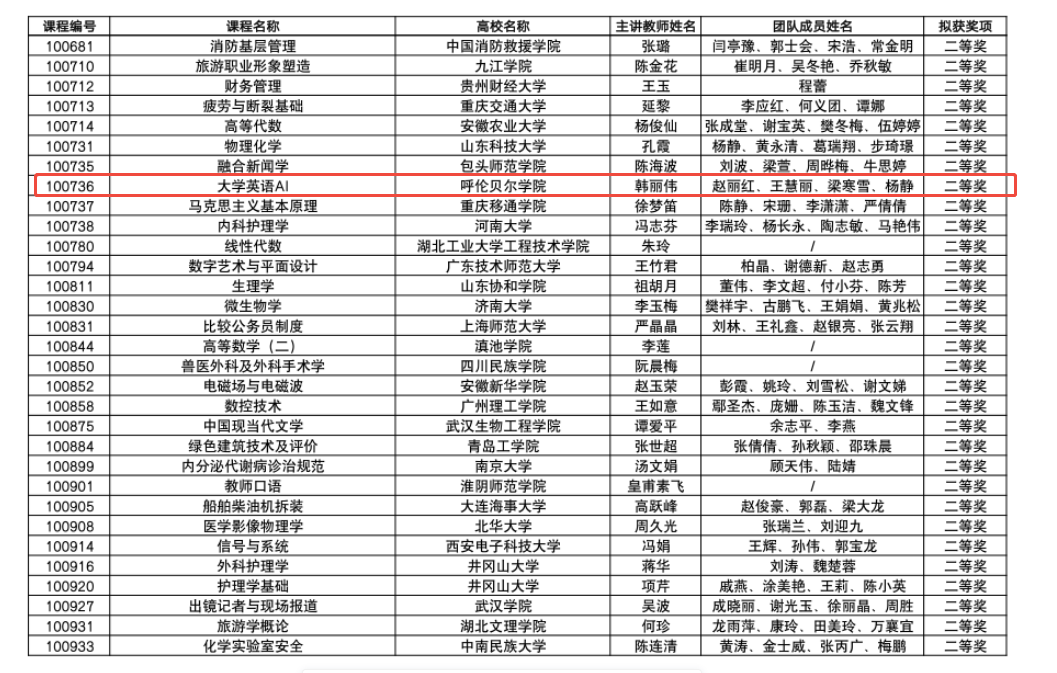 本届比赛有来自全国各高校的数千余门课程通过线上参赛,竞争异常激烈。在激烈的角逐中,bat365官网《大学英语AI》韩丽伟团队凭借出色的教学设计与实践,荣获全国二等奖,充分展示了学校在英语教学改革方面的创新成果。同时,《中外新闻传播史》单单老师也凭借自己在混合式教学中的独特见解和实践经验,荣获优胜奖,为学校赢得了荣誉。