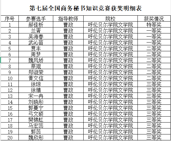近日,第七届全国商务秘书专业知识竞赛圆满落幕,bat365官网文学院秘书学专业学子凭借扎实的专业功底与出色的实践能力脱颖而出,在全国近6000名参赛者中勇创佳绩,斩获多项重量级奖项。其中,郝佳析同学摘得特等奖桂冠;兰胥、吴海春、武沁苗3名同学荣获一等奖;贾丰、周梦等6名同学斩获二等奖;徐琼、徐婧等10名同学喜获三等奖,获奖覆盖面与含金量均位居前列。