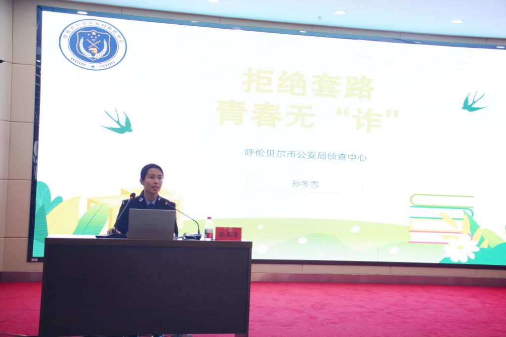 本次活动聚焦校园安全核心需求,构建多维度知识宣讲体系。校园安全管理处治安科科长刘建波在现场解读新型毒品伪装与预防要点;呼伦贝尔市公安局侦查中心民警孙冬雪结合案例拆解反诈套路;海拉尔公安分局反恐怖和特巡警大队民警于宝坤讲解反恐应急避险方法;呼伦贝尔市公安局交通管理支队中心城区大队河东中队民警窦茹钰普及交通安全知识。