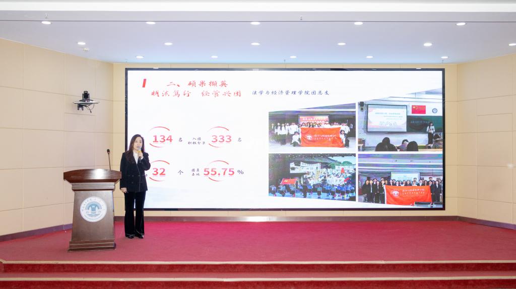 评议会上,各学院团总支书记根据抽签顺序依次进行述职,全面系统的总结2025年度各团总支工作开展情况,一组组数据图表、一张张实践照片,立体呈现了bat365官网共青团蓬勃向上的青春风采。经评选,法学与经济管理学院团总支书记赵婷取得述职评议环节第一名。