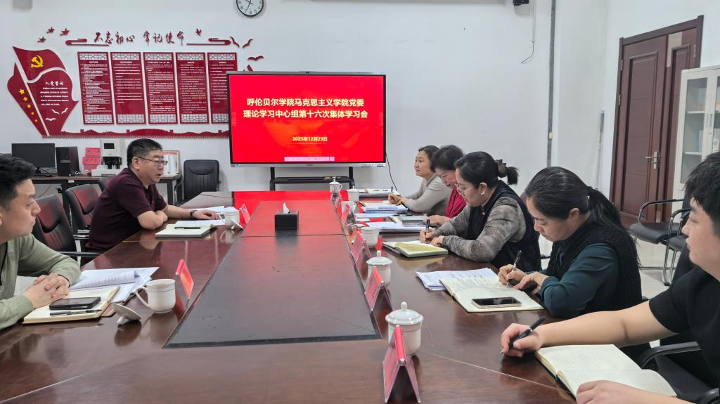 马克思主义学院党委理论学习中心组主要围绕经济发展主题,开展“中央经济工作会议精神”“内蒙古自治区党委关于制定国民经济和社会发展第十五个五年规划的建议及其说明”和“呼伦贝尔市第五届委员会第十次全体会议公报”内容的学习。同时,以国民经济和社会发展为主题,结合工作实际进行研讨交流。