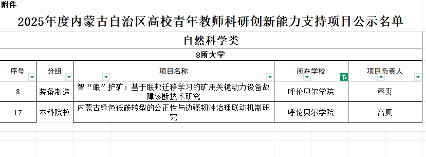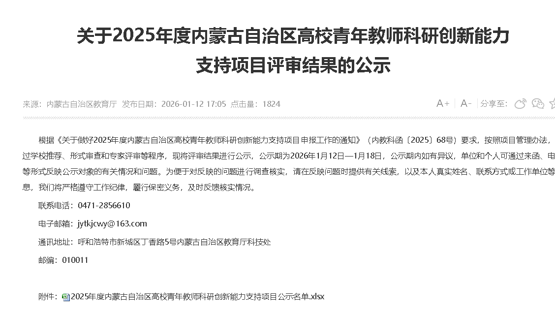 近日,内蒙古自治区教育厅公示2025年度高校青年教师科研创新能力支持项目评审结果,bat365官网两名青年教师主持的项目成功入选。