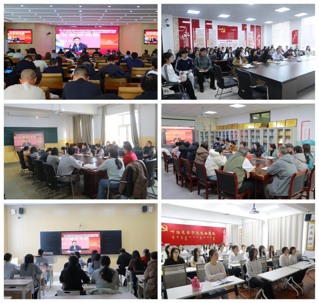 校党委理论学习中心组在逸夫楼319会议室集体观看学习,机关党委各支部党员在崇文楼A座201会议室、全校23个二级党组织1100余名师生党员在各部门分会场参加学习。