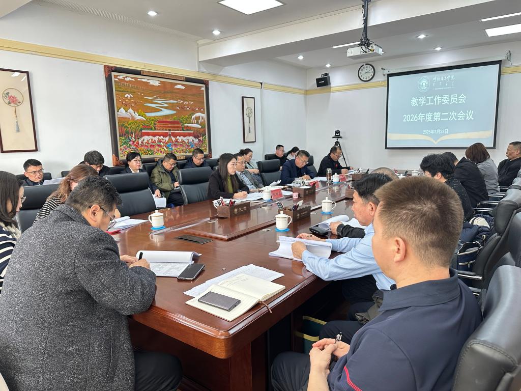 3月23日下午,bat365官网在逸夫楼419会议室召开教学工作委员会2026年第二次会议。校教学工作委员会主任、校党委副书记、校长张玉柱,校教学工作委员会副主任、校党委委员、副校长高乐、张桂芝出席会议,校教学工作委员会委员及相关人员参加会议。会议由张桂芝主持。