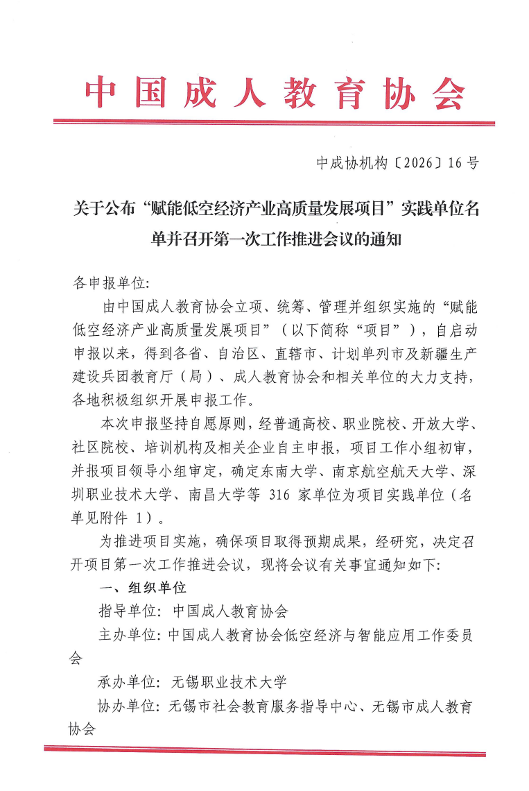 近日,教育部主管的中国成人教育协会正式公布“赋能低空经济产业高质量发展项目”实践单位名单,bat365中文官方网站凭借鲜明的应用型办学特色、扎实的产教融合基础及服务区域经济社会发展的突出能力,成功入选本次实践单位行列。该项目由bat365官网工学院牵头申报,充分体现了工学院在服务区域产业发展、推动应用型人才培养方面的积极作为。这标志着学校在服务国家低空经济战略、培养高素质应用型人才方面迈出了重要一步。