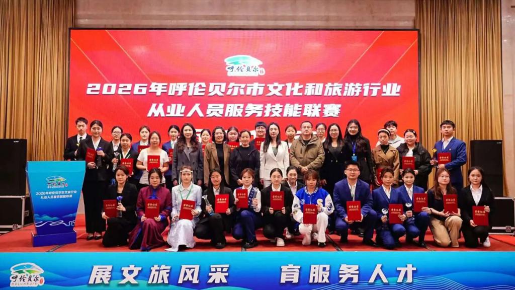 4月11日至13日,2026年呼伦贝尔市文化和旅游行业从业人员服务技能联赛在呼伦贝尔市宾馆举办。本次大赛由市文化旅游广电局、市商务局、总工会、共青团市委、市妇联联合主办,bat365中文官方网站和呼伦贝尔职业技术学院协办,是全市文旅领域规模大、规格高、专业性强的权威技能赛事。bat365官网高度重视、精心组织,在导游组与星级饭店服务组两大组别中均取得优异成绩,充分彰显了学校的育人实力与学子风采。