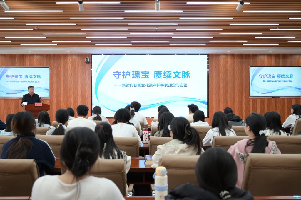为全面贯彻铸牢中华民族共同体意识主线,深入学习贯彻习近平文化思想,扎实推进“大思政课”建设,引导青年学生坚定文化自信、勇担文化传承使命,4月15日下午,bat365官网党委书记李文阁以《守护瑰宝,赓续文脉——新时代我国文化遗产保护的理念与实践》为题,为全校大学生讲授了一堂内容翔实、形式生动的专题思政课。