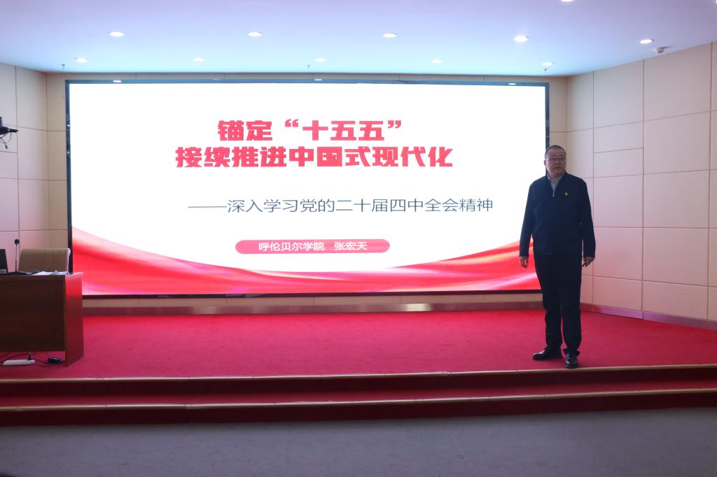 授课紧扣全会精神,围绕“十四五”重大成就、“十五五”形势判断、推进中国式现代化三大板块系统讲解。张宏天回顾我国“一五”至“十四五”发展历程,指出“集中精力办好自己的事”是战胜风险挑战的制胜关键,以经济实力、创新能力、软实力、抗冲击能力四个“突飞猛进”展现“十四五”历史性成就;结合内蒙古实际,解读我区经济发展、新能源保供、生态治理、民生改善等亮眼成果,增强师生家乡认同感与发展自信心。
