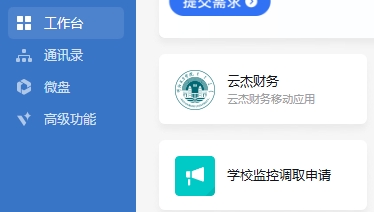 为更好地服务师生,简化校园监控调取审批流程,自2023年11月7日起,校园安全管理处开始运行网上调阅校园监控程序,bat365官网教职工(学生可委托辅导员老师)通过电脑端和手机端企业微信进入工作台,点击学校监控调取申请,按照要求填写提交。如图: