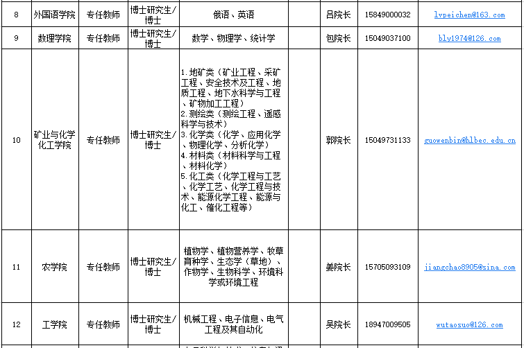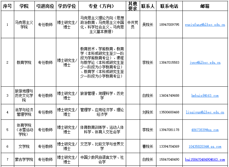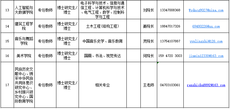 邮箱:renshichu8892@163.com(投递简历邮件标题:应聘二级学院名称+姓名+学历+专业)