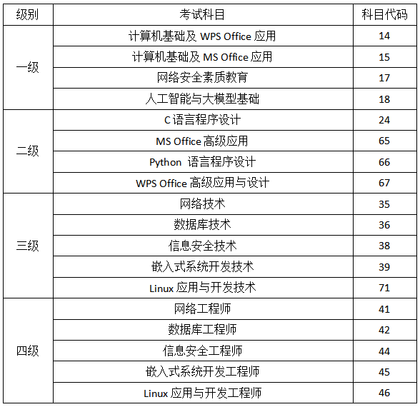 4. NCRE级别科目设置及证书体系(获证条件)、考试大纲及教程目录可登录中国教育考试网(https://www.neea.edu.cn/)查阅。