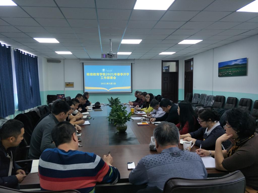 3月1日上午,继续教育学院在学院会议室召开新学期工作部署会议。学院全体教职工参加会议。