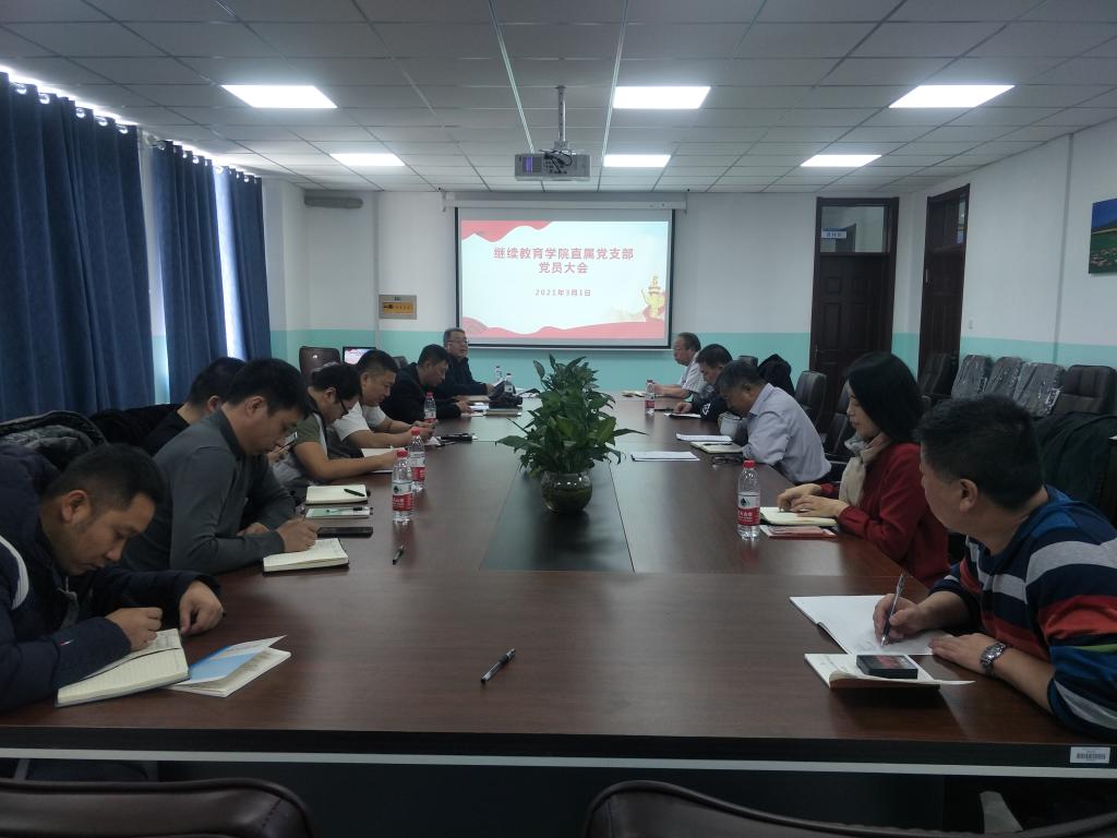 3月1日上午,继续教育学院直属党支部召开第一次全体党员大会,我院全体党员参会,何平书记主持会议。