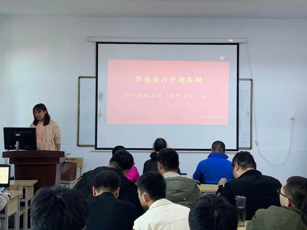 3月26日,卜桂玲院长一行五人到扎煤行业学院组织2017级机械工程专业的毕业设计开题答辩会。本次毕业设计共有七名指导教师,其中包括一名企业指导教师,选题范围包括矿山机械的多个方面,课题大部分来源于企业生产实践项目,具有前瞻性和实用性,毕业设计指导教师进行了多次的选题论证,以求在多方面培养学生的综合工程应用实践能力。学生开题答辩后,指导教师针对开题答辩的主要内容,研究背景、研究技术路线及PPT制作等方面给予学生全面的指导,并且在开题答辩后进行了分组指导,进行下一步的任务布置和安排。