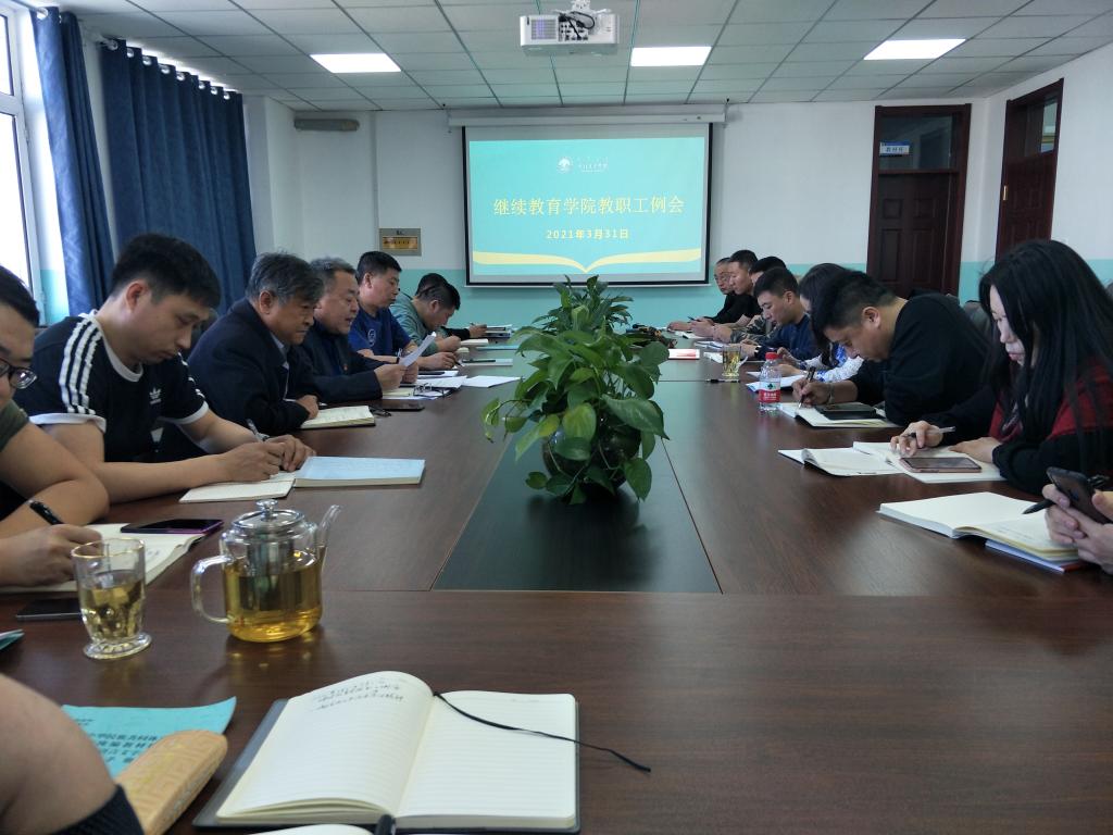 3月31日,继续教育学院召开全体教职工学习会。会议由直属党支部书记何平书记主持。