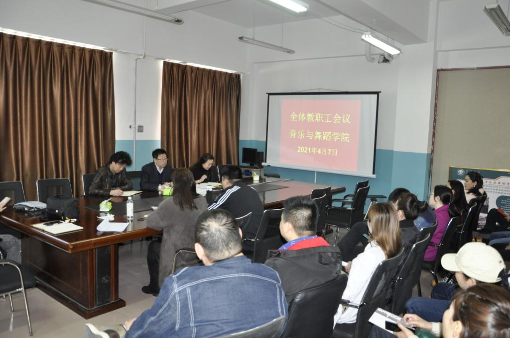 4月7日,音乐与舞蹈学院在艺术楼606会议室召开全体教职工会议。会议由党总支书记李雅杰主持。