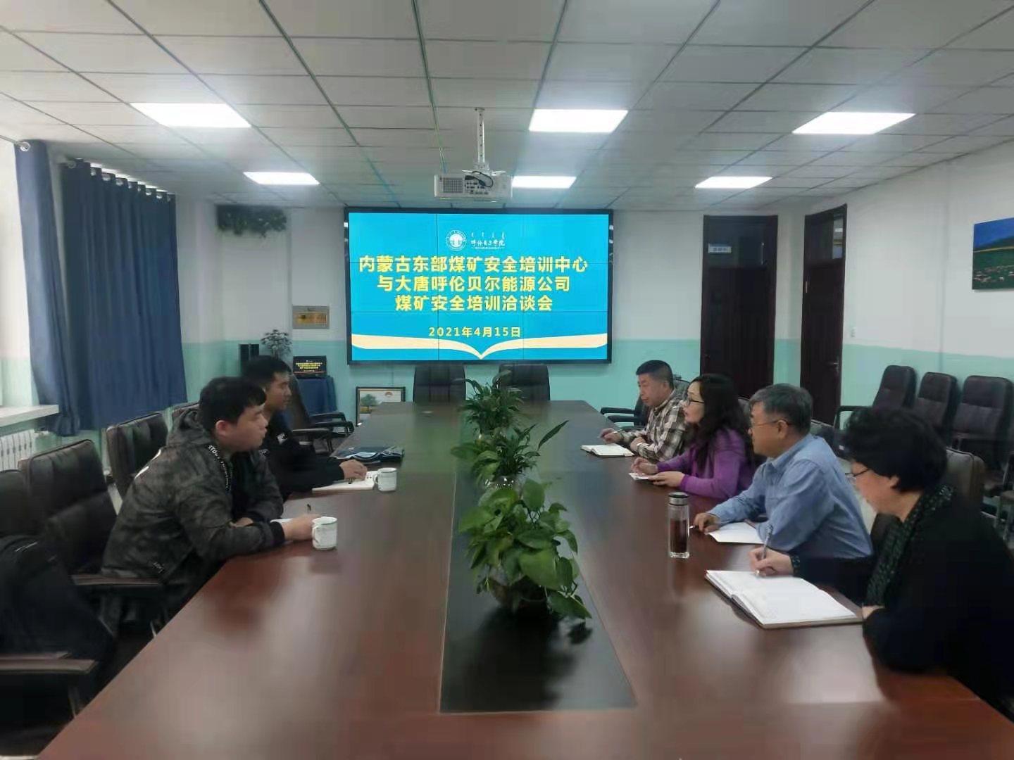 4月15日,内蒙古东部煤矿安培中心与大唐呼伦贝尔能源开发有限公司顺兴煤矿安全培训工作在中心会议室举行洽谈会。继续教育学院院长莎茹莉、副院长孙志文,大唐能源顺兴煤矿安全矿长王国英、培训部主管肖庆宇出席了洽谈会。