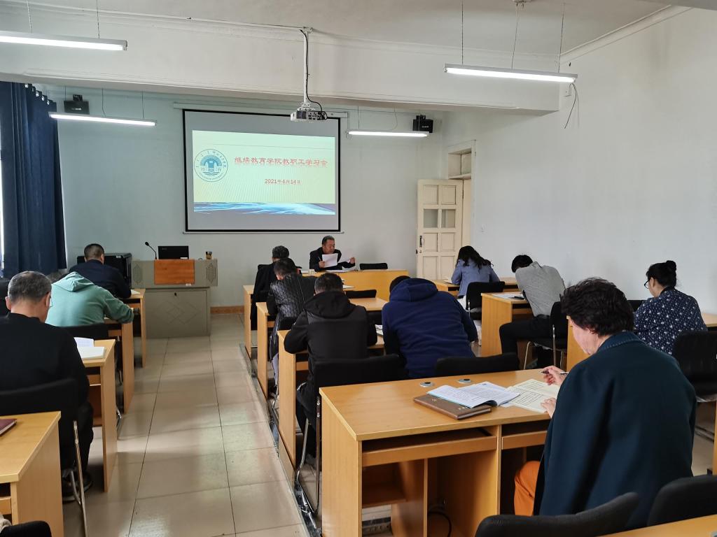 4月14日,继续教育学院召开全体教职工学习会。