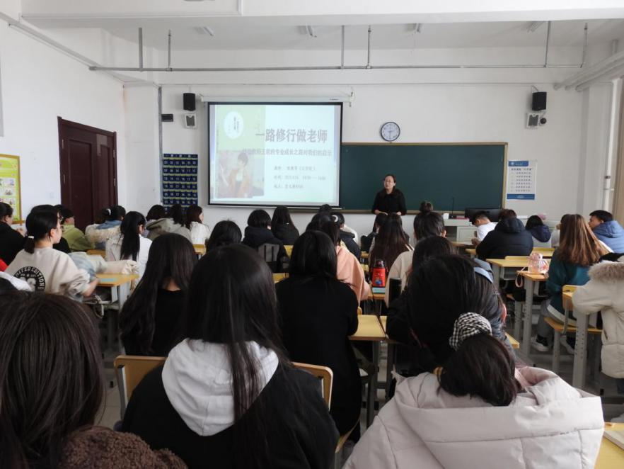 陈艳华老师以中学语文特级教师王君的专业成长为例,从教师专业知识的积累、教育教学技能的习得、教育激情与思想、教科研常态化、班主任工作等方面教授汉语言文学专业学生如何成为一名合格的教师。讲座还邀请了8位优秀一线教师通过视频和信件的方式寄语学生如何扎实专业基础、如何进行实践训练、如何培养教育情怀。