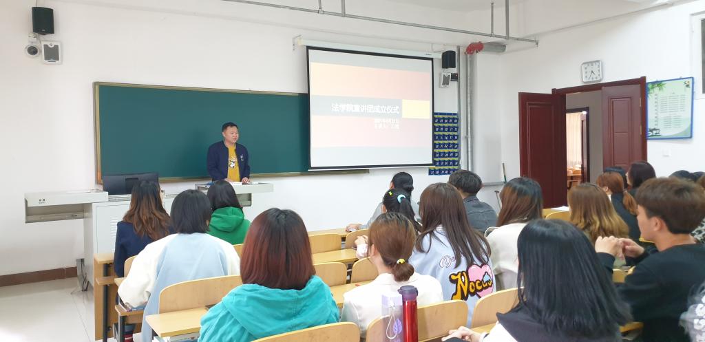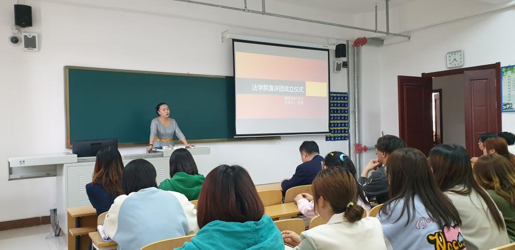 4月21日下午,法学院在B425举行了法学院新时代师生宣讲团成立仪式,特别邀请校党委宣传部理论教育科科长白玫老师为师生开展了理论宣讲专题知识讲座。党总支副书记白杰主持会议,团学办、综合办、指导教师及宣讲团全体学生参加了会议。
