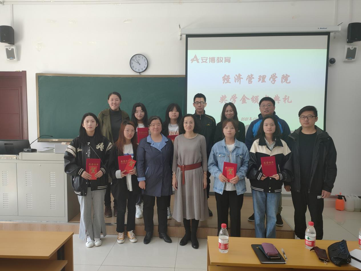 本次典礼共分为两个环节。首先,唐琦老师向大家介绍了安博教育奖学金的概况。学生代表毕冉向大家分享了自己大学学习生活的心得体会。随后,经济管理学院领导为获得奖学金的同学颁发证书,合影留念。