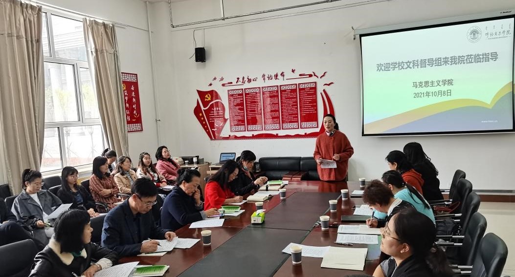10月8日下午,校督导组于晓梅教授、王贵文教授、尚爱萍教授一行三人莅临马克思主义学院指导教学工作。马克思主义学院教学副院长吴秀芳主持,马克思主义学院党总支书记刘凤琴、院长李俏、副书记刘琳及全体教师出席会议。
