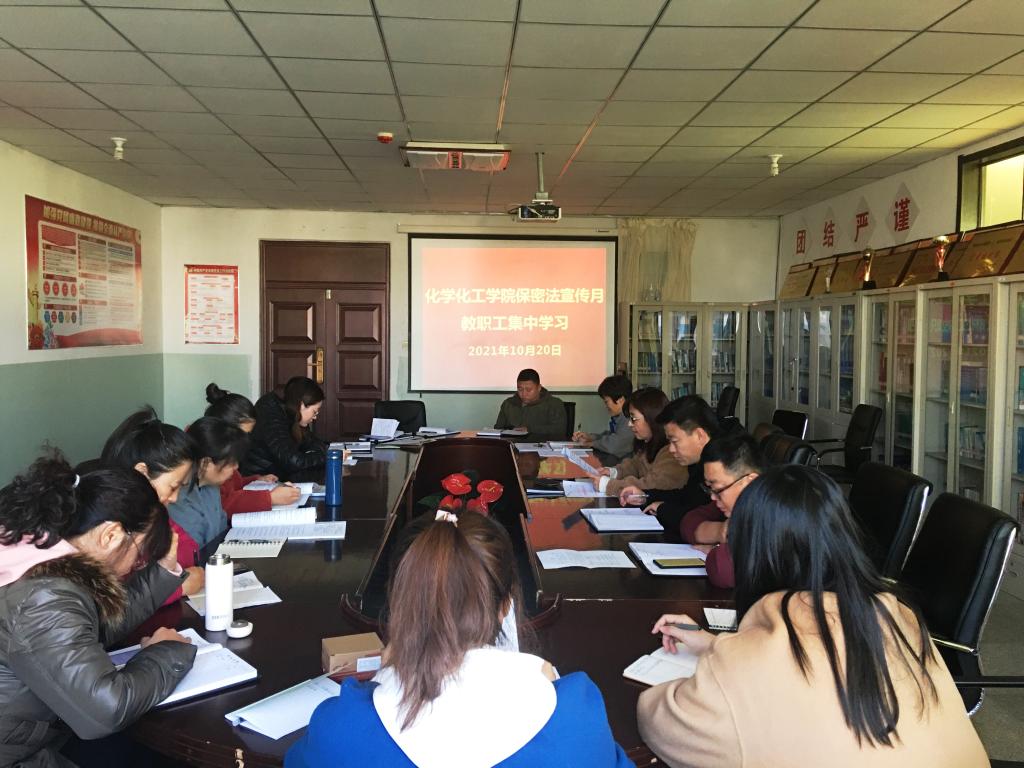 10月20日,化学化工学院全体教师进行了保密法规集体学习。化学化工学院党总支书记艾丽领学了《中华人民共和国保密法》《bat365中文官方网站保密工作责任制暂行规定》《bat365中文官方网站工作秘密管理暂行办法》;列举典型案例,对认清当前保密安全形势,树立保密观念,预防失、泄密事件进行了深入的交流学习,进一步提升了学院教师的保密意识和责任意识。