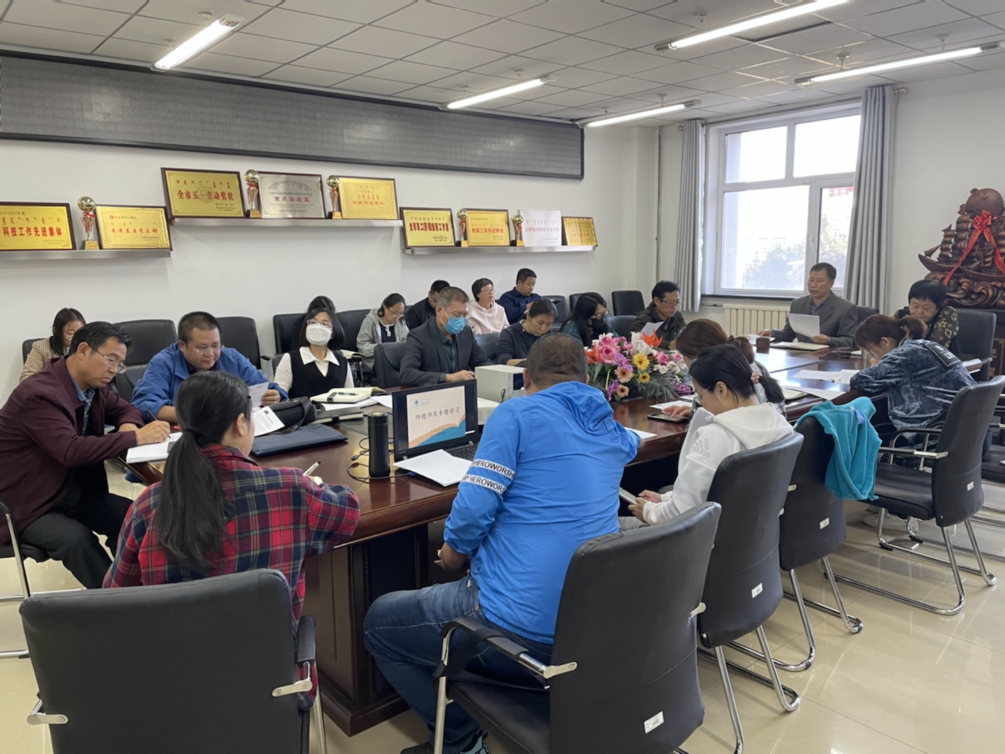 会上,白国林书记传达了石泰峰书记的讲话精神、自治区高工委的相关文件、自治区关于疫情防控视频会议精神以及学校疫情防控工作调度会议的主要内容,重点强调了学校疫情防控的下一步工作。他要求全体教师员工:一是要按照自治区党委、高工委要求,切实提高政治站位,克服麻痹思想;二是要立足学校实际加强思想引导,使师生了解疫情防控重要性、紧迫性,绝对加强学生管理,通过召开主题班会的方式,使学生准确理解校园管控意义,遵守学校疫情防控的各项要求;三是要确保各种具体措施落实到位,严格师生请销假制度,做到非必要不外出。全体教师要及时了解并认真执行学校疫情防控相关要求。