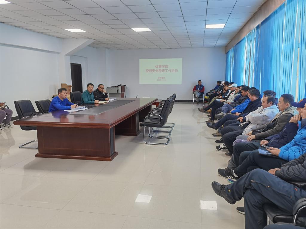 11月10日下午,体育学院在东山田径场二楼会议室召开2021年度安全稳定工作会议,体育学院院长李晓峰、党总支副书记胡日查、副院长林剑冬及全体教师参加了会议。